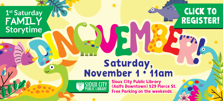 Celebrate DINOVEMBER with a Dinosaur storytime featuring books, songs, and activities about everyone’s favorite prehistoric reptiles. After storytime, we’ll make a fun dinosaur craft! Parking is free at the Aalfs Downtown Library on weekends.