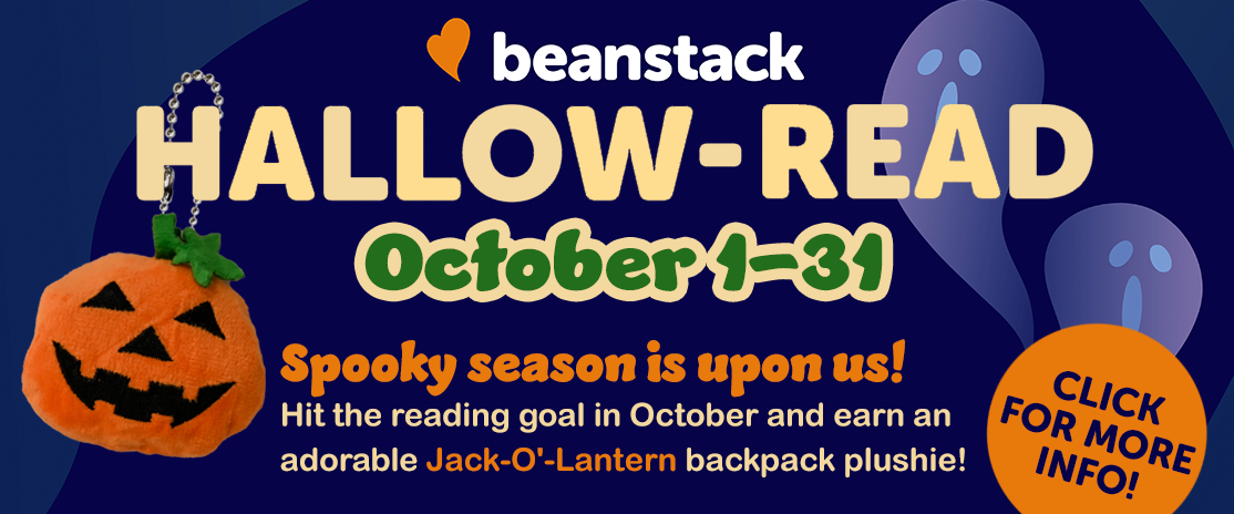 October is HALLOW-READ month! Kids can log their reading and earn creepy badges all month long (October 1-31). Ages 0-5 have a goal of reading 30 books over the course of the month. Ages 6-18 have a goal of reading 5 hours over the course of the month. Hit the reading goal of 30 books or 5 hours read in October and earn an adorable Jack-O'-Lantern backpack plushie!