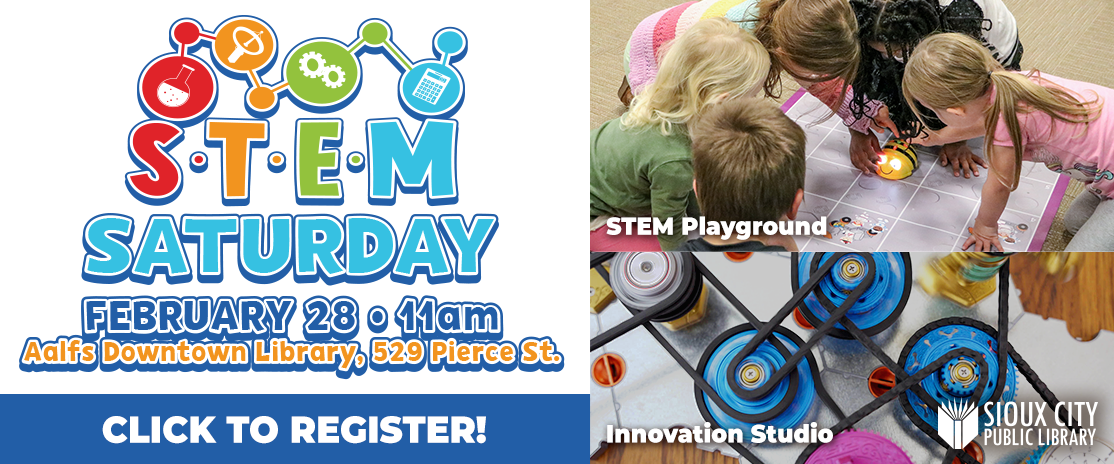 Get registered for these STEM-themed events (for Ages 4-12) happening at the Aalfs Downtown Library on Saturday, February 28. Ages 4-8 will explore coding concepts with the Library's Bee Bots and Ages 9-12 will build model electrical circuits using Spintronics.